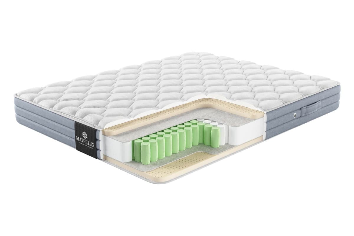 Матрас с ортопедическим эффектом MaterLux Tivoli из коллекции Elite словно создан самой природой, чтобы заботиться о здоровье и создавать идеальные условия для восстанавливающего сна. Он подойдет людям любой комплекции и парам с большой разницей в весе. Двойная поддержка пружин Центральный элемент матраса — Molla Doppio Comforto — пружинная система двойной поддержки, которую мы используем только в премиальных моделях. Благодаря усиленной системе матрас подойдет для любой комплекции, включая пар с разницей в весе более 50 кг и людей весом выше среднего. Система устроена так, что внутри крупных пружин расположены пружины меньшего диаметра. При небольшой нагрузке работают только крупные пружины, когда давление на поверхность увеличивается, в работу включаются обе. Это позволяет матрасу адаптироваться к каждому человеку, сохранить физиологически правильное положение позвоночника. Чехлы для пружин мы изготовили из файбертекса — материала, который значительно превосходит бюджетные аналоги по прочности и эластичности. Благодаря его способности эффективно поглощать вибрации и сохранять целостность даже при интенсивных нагрузках, матрас сохраняет полезные свойства до 20 лет. Натуральный латекс — комфорт премиум-класса Для обеих сторон матраса мы выбрали одинаковое наполнение, поэтому обе поверхности умеренно-мягкие. Переворачивая матрас, вы не заметите разницы в комфорте — вам будет удобно на любой стороне. Lattice Fresco Naturale — натуральный бельгийский латекс. Благодаря этому наполнителю матрас максимально детально адаптируется к фигуре, снимает нагрузку с суставов, добавляет расслабляющий эффект. Натуральный латекс изготовлен из каучука, он обладает природными антибактериальными свойствами. Благодаря им натуральная пена препятствует размножению бактерий, плесени и пылевых клещей. Дополнительные материалы для прочности матраса Feltro Termico — плотный термофиксированный фетр из шерсти, пуха и хлопка. Мы прокладываем слой фетра между пружинами и наполнителями. Материал защищает слои от давления пружинами, поэтому матрас служит дольше, сохраняет упругость и ортопедические свойства. Короб из пены Natural Foam Solido — плотная пена по периметру блока пружин и слоев наполнителей. Усиливает края матраса.